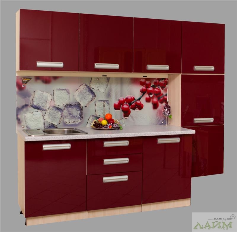 Кухонный гарнитур студия Лайм. Эффектные фасады бордового цвета. В каталоге компании имеется более 60 цветов фасадов и более 100 модулей, что позволяет создать кухню с учетом всех пожеланий и особенностей интерьера. Модуль может быть нестандартным по высоте, ширине и глубине. В качестве фасадных материалов используются МДФ в пленке ПВХ, ЛДСП и массив сосны. Рабочая поверхность – постформинг. Комплектация фурнитуры производится по желанию заказчика. Широкий модельный ряд моек из саянского мрамора «Granicom», устойчивых к бытовым повреждениям, загрезнениям и агрессивным средам. Наши дизайнеры выполнят индивидуальный проект и определят стоимость предложенного варианта.