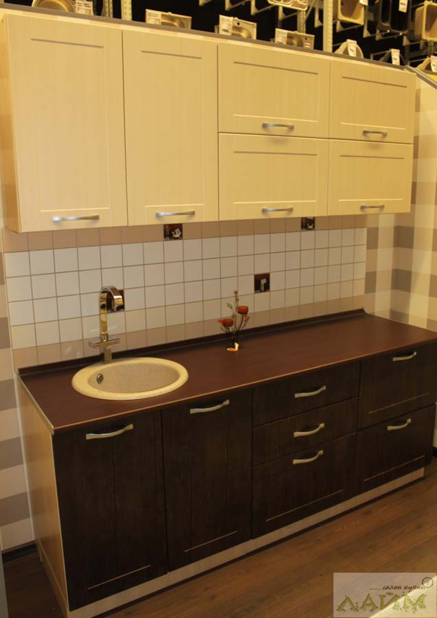Фасад ПВХ – верх – Лен белый, низ – Тиковое дерево
