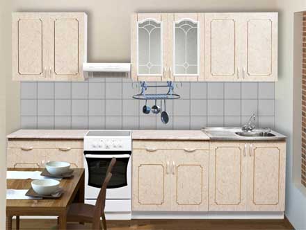 Ручки: пластмассовые. Для кухонных гарнитуров из однотонного пластика: ручки рэлинги пластмассовые (цвет Хром).